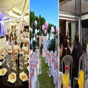 L'Espace des BAS. : les 3 espaces colles et communicants sur un meme niveau , acces handicape partout , hors nappage ; + 1 Terrasse Couverte et dallee de 200 m2 , 10 tables rondes de 12 pers + 7 tables rondes de 10 pers , des chaises en plastique blanche et des tables buffets rectangles + 1 Jardin gazonne et arbore 200 m2 , vue mer et montagne , avec 1 bar Couvert, 3 mange debout + 1 Salle climatisee de 200 m2, avec 3 frigos , 3 wc , et L'Espace des HAUTS ceremonie , espace Jardin :Bises et aperitif, garderie , chambre d'enfants .... + 1 Salle climatisee, 65 m2 , equipee de 2 frigos, 3 wc , ( acces handicape aux 3 sites ) + 1 Terrasse en bois, couverte, 80 m2 , vue mer